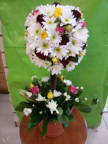 Композиция на оазисах, это специальное пористое вещество пропитанное водой. Не требуется полив, цветы получают воду из оазиса.