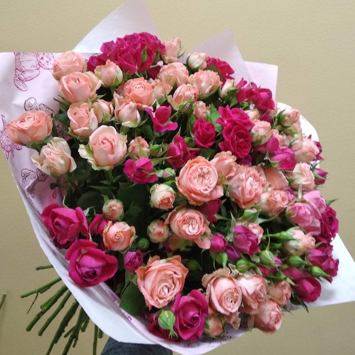 - Роза кустовая 50см: 51 шт. Пышные, отличного качества, в вазе стоят хорошо, молодые бутоны дозревают в вазе